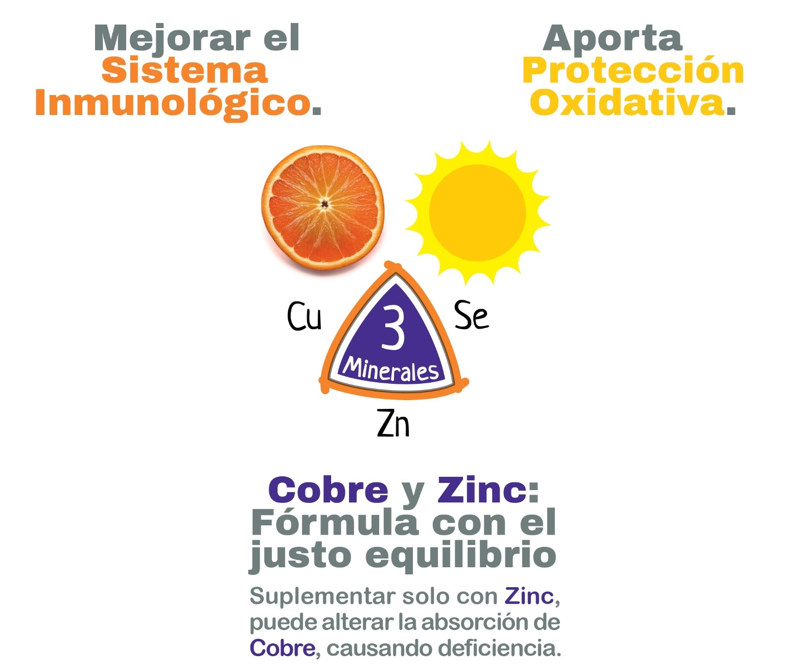 - Fortalecimiento del sistema inmunológico: la vitamina c, es un poderoso antioxidante que puede ayudar a fortalecer las defensas del cuerpo contra los radicales libres y las infecciones. La vitamina D también es conocida por su papel en la regulación del sistema inmunológico y la respuesta inflamatoria. El zinc es esencial para la función de las células inmunitarias, mientras que el cobre y el selenio actúan como cofactores en las varias enzimas antioxidantes y procesos metabólicos que son fundamentales para la respuesta inmune adecuada.